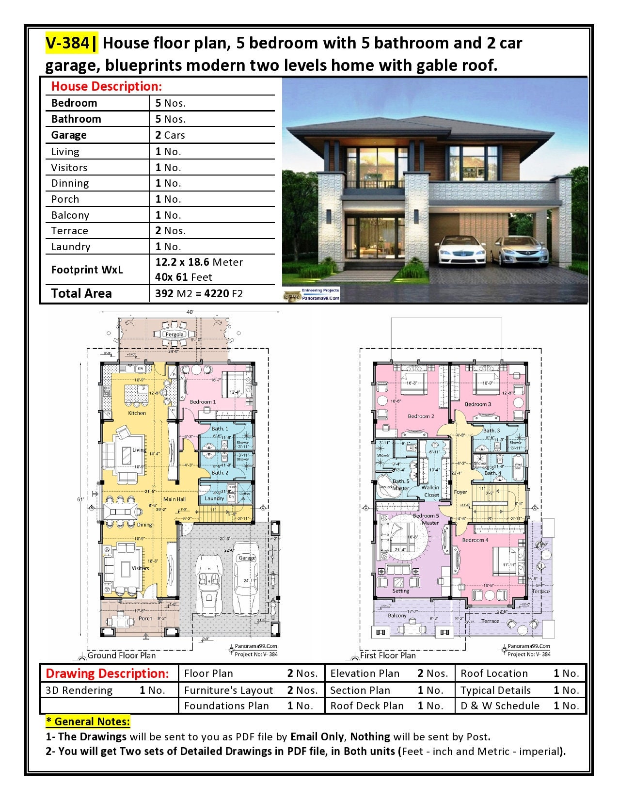 V 384 House Floor Plans 5 Bedroom With 5 Bathroom And 2 Car Etsy Canada