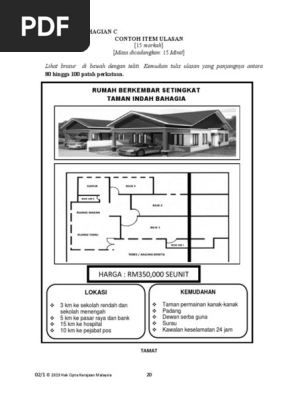 CONTOH ITEM ULASAN 15 markah Masa dicadangkan. Plan rumah 30 x 40. Single Storey Semi-D for sale in Rasah Kemayan Seremban 2 Offer Price.